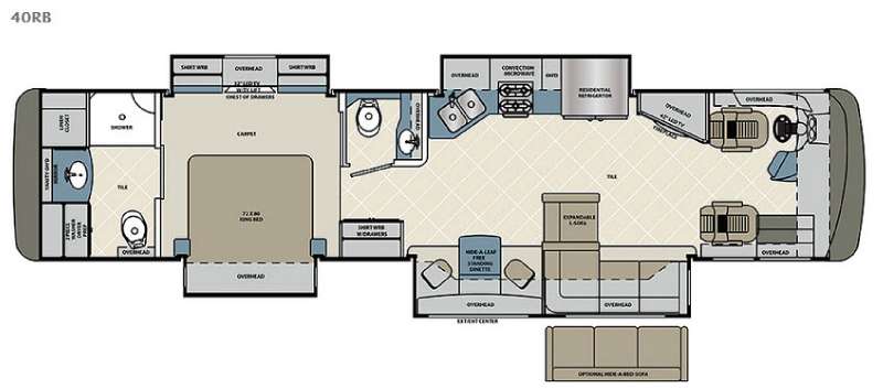 - Two flip down LCD monitors with DVD and AV inputs (1 per bunk) (40BH only)