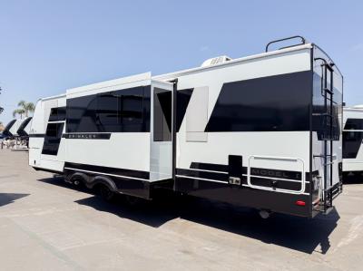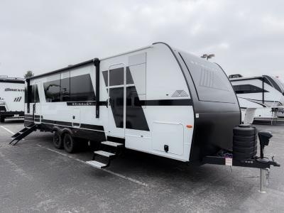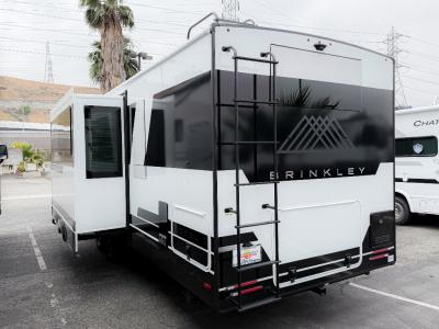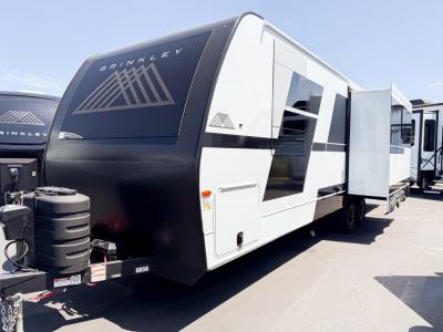 The lightweight Model I travel trailer by Brinkley is the perfect choice for those looking for an easy tow and at-home comforts! There is a drop-frame chassis, high-performance Road Armor suspension equalizer system, and Demco EZ Latch trailer coupler that automatically latches when dropped onto a hitch ball without the need of a safety pin. Additional exterior features include square Euro frameless windows, automotive-grade paint, full-width LED strip lighting in the pass-thru, and a pet & property security campside tie-down to keep your gear and furry friends safe. Inside, you'll be wowed by Brinkley's CraftSense wood trim construction, residential solid surface kitchen countertops, dimmable bedroom lights, and marine-grade neon LED shower lighting to name a few stand-out features!
