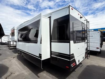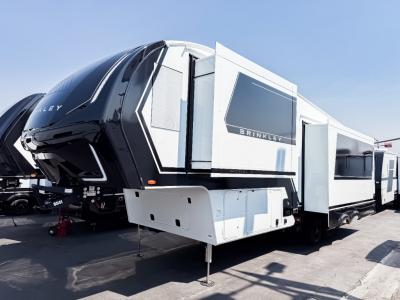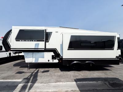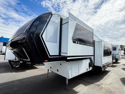 The Brinkley mid-profile Model Z fifth wheels bring you clean lines and an upscale look with plenty of style and exciting new features like the industry first brass plumbing connections. These units also feature an automotive grade front cap, plenty of exterior storage, dual exterior hot and cold showers, and wide stance leveling jacks for easy set up. Residential frameless windows provide a clean look and beautiful views, and ample electrical outlets and USB/USB-C outlets allow all of your electronics and appliances to easily be used and charged.