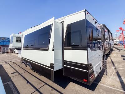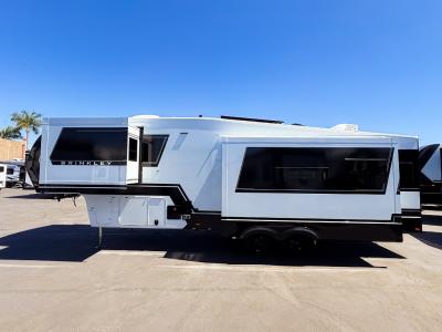 Sleeps 4 Slides 3 Length 34 ft 11 in Ext Width 8 ft Ext Height 13 ft 3 in Hitch Weight 2298 lbs GVWR 15495 lbs Dry Weight 12276 lbs Fresh Water Capacity 75 gals Grey Water Capacity 90 gals Black Water Capacity 45 gals Tire Size 215/75 R17.5 Furnace BTU 35000 btu Available Beds King Refrigerator Type 12V Refrigerator Size 16 cu ft Cooktop Burners 3 Shower Size 30" x 42" Number of Awnings 2 Axle Weight 7000 lbs LP Tank Capacity 30 lbs Water Heater Type Tankless On Demand AC BTU 31500 btu TV Info LR 50" Smart Telescoping TV, BR 32" Smart TV Awning Info 11' & 15' Electric w/Neon COB/Dotless LED Lighting Axle Count 2 Washer/Dryer Available Yes Number of LP Tanks 2 Shower Type Standard Similar Fifth Wheel Floorplans