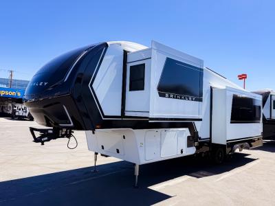 The Brinkley mid-profile Model Z fifth wheels bring you clean lines and an upscale look with plenty of style and exciting new features like the industry first brass plumbing connections. These units also feature an automotive grade front cap, plenty of exterior storage, dual exterior hot and cold showers, and wide stance leveling jacks for easy set up. Residential frameless windows provide a clean look and beautiful views, and ample electrical outlets and 6 USB/USB-C outlets allow all of your electronics and appliances to easily be used and charged.