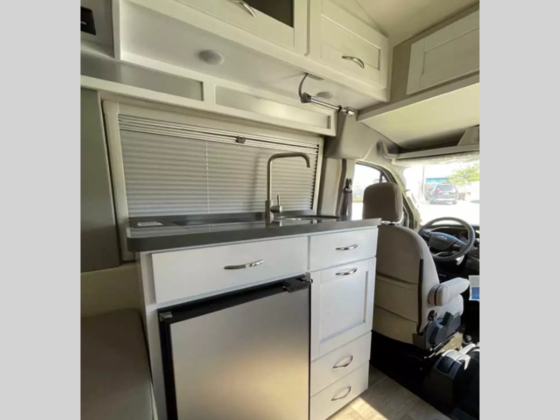 Sleeps 2 Length 22 ft 2 in Ext Width 7 ft Ext Height 9 ft 11 in Int Height 6 ft 3 in Interior Color Cashmere, Fog Exterior Color Avalanche Grey, Ingot Silver, Oxford White, Carbonized Grey Hitch Weight 500 lbs GVWR 10360 lbs Fresh Water Capacity 27 gals Grey Water Capacity 15 gals Black Water Capacity 12 gals Generator RVQG2800i 2.8KW Gas Fuel Type Gasoline Engine 3.5L V6 Eco Boost Chassis Ford Transit 350 HD AWD Fuel Capacity 25 gals Wheelbase 148 in Refrigerator Type Nova Kool Compressor Convection Cooking Yes Cooktop Burners 1 Number of Awnings 1 Axle Weight Front 4630 lbs Axle Weight Rear 7275 lbs LP Tank Capacity 51 lbs. Water Heater Type Truma Combi Eco Plus TV Info Coach 24" LED Smart TV Awning Info 13' 1" Carefree Armless with Motion Sensor Gross Combined Weight 12600 lbs Shower Type Wet/Bath Shower -