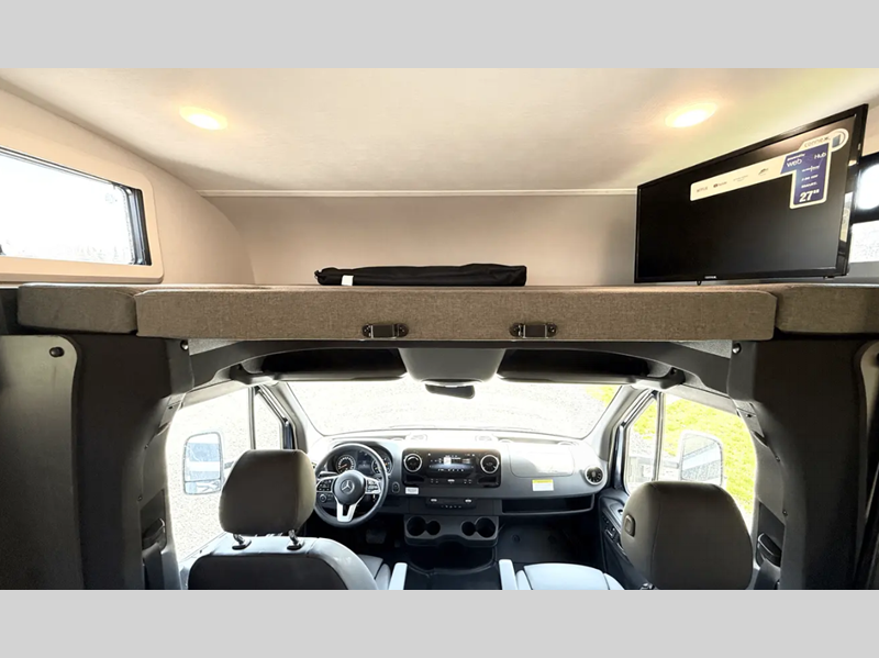 Sleeps 2 Slides 1 Length 25 ft 4 in Ext Width 7 ft Ext Height 11 ft 4 in Int Height 6 ft 9 in Hitch Weight 4200 lbs GVWR 11030 lbs Fresh Water Capacity 35 gals Grey Water Capacity 32 gals Black Water Capacity 32 gals Furnace BTU 30000 btu Generator 3.6 kW LP Fuel Type Diesel Chassis Mercedes-Benz Sprinter Fuel Capacity 26 gals Wheelbase 170 in Available Beds Murphy Refrigerator Type 12V Refrigerator Size 10.7 cu ft Convection Cooking Yes Cooktop Burners 2 Shower Size 24" x 36" Number of Awnings 1 Axle Weight Front 4410 lbs Axle Weight Rear 7720 lbs LP Tank Capacity 56 lbs. Water Heater Capacity 6 gal Water Heater Type DSI Gas/Electric AC BTU 15000 btu TV Info Cab 12V TV, LR 40" Pop-Up TV Awning Info 15'6" Power w/LED Light Strip Gross Combined Weight 15250 lbs Shower Type Standard Electrical Service 30 amp Similar Floorplans