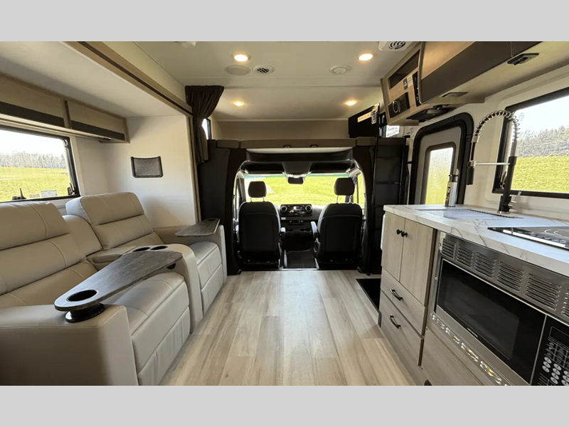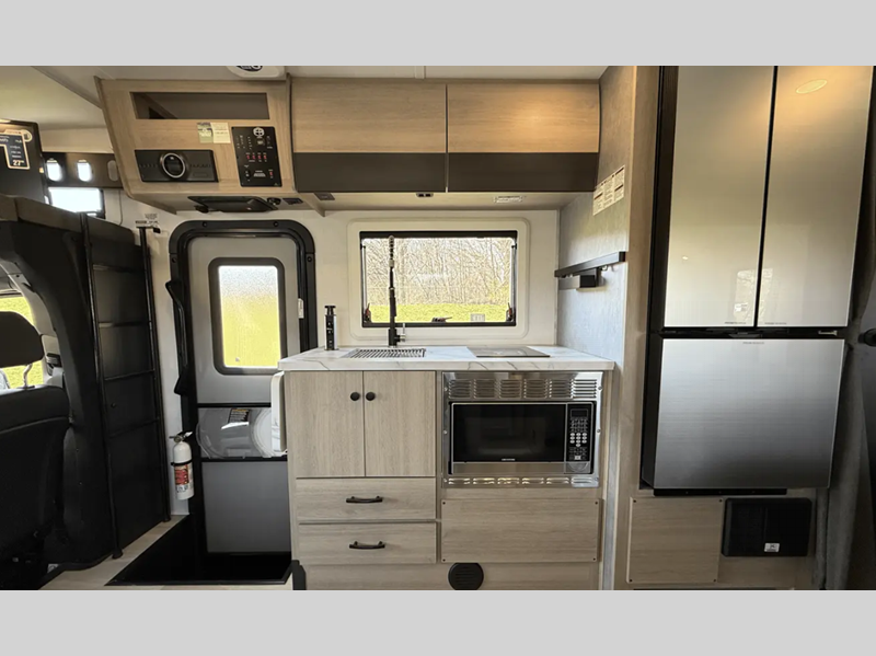 Sleeps 4 Slides 1 Length 25 ft 5 in Ext Width 7 ft 11 in Ext Height 11 ft 3 in Int Height 6 ft 9 in Hitch Weight 4200 lbs GVWR 11030 lbs Fresh Water Capacity 35 gals Grey Water Capacity 32 gals Black Water Capacity 32 gals Furnace BTU 30000 btu Generator 3.6 kW LP Fuel Type Diesel Chassis Mercedes-Benz Sprinter Fuel Capacity 26 gals Wheelbase 170 in Number Of Bunks 1 Available Beds Murphy Queen Refrigerator Type 12V Refrigerator Size 10.7 cu ft Convection Cooking Yes Cooktop Burners 2 Shower Size 24" x 36" Number of Awnings 1 Axle Weight Front 4080 lbs Axle Weight Rear 7720 lbs LP Tank Capacity 56 lbs. Water Heater Capacity 6 gal Water Heater Type DSI Gas/Electric AC BTU 15000 btu TV Info Cab 12V TV, BR 12V TV Awning Info 15'6" Power w/LED Light Strip Gross Combined Weight 15250 lbs Shower Type Standard Electrical Service 30 amp Similar Floorplans