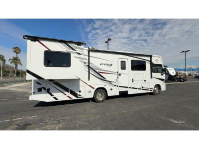 Each FR3 is built on a Ford F53 chassis with a 7.3L V8 six-speed TorqShift transmission giving you 335HP to power your many adventures. A few other outstanding features include the body-mounted side and rearview camera package, a one-piece fiberglass roof, a grey Rotocast storage boxes with drains, and a 5,000-lb. tow hitch. The interior is just as impressive with 84" interior ceilings, IVC residential vinyl flooring, custom countertops with flip-up and pullout countertop extensions, and a residential microwave to mention a few highlights.