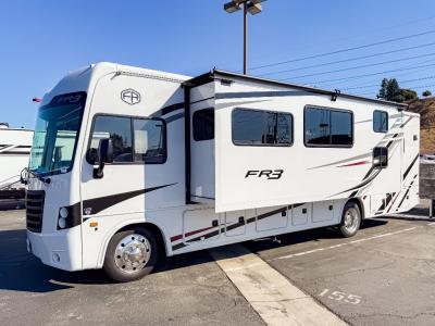 With each FR3 Class A gas motorhome by Forest River, you will find an easy-to-drive coach with a spacious interior allowing you to gather with friends and family with convenience and style found throughout! Each is built with vacuum-bonded construction, a one-piece fiberglass roof with extended rain spouts, a steel firewall and A-pillar extension, Bi-LED headlamps and lower LED fog lights, and grey Rotocast storage boxes with drains. Inside, you will enjoy black hardware, appliances, plumbing fixtures, and a glass shower door frame. You will also find a stainless steel kitchen sink with a bamboo cutting board and roll-up dryer, heavy-duty full-extension ball bearing drawer guides, dual-access dinette storage with doors, and nightstands with charging stations to keep your cellphones ready for whatever is next. Make your selection today!