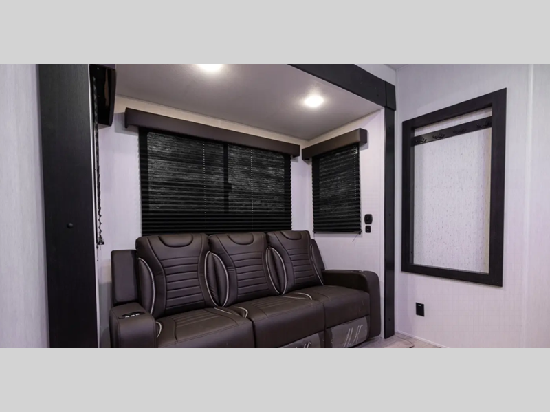 Each model is constructed with an armored underbelly tank enclosure and forced air heat to all holding tanks which will allow you to camp all year long. The outside shower with hot and cold water means you can wash off your toys after trail riding, and the power awning will provide an inviting outdoor space to relax. Inside, you'll enjoy seamless countertops, zebra shades, a tankless on demand water heater, and more convenient features.
