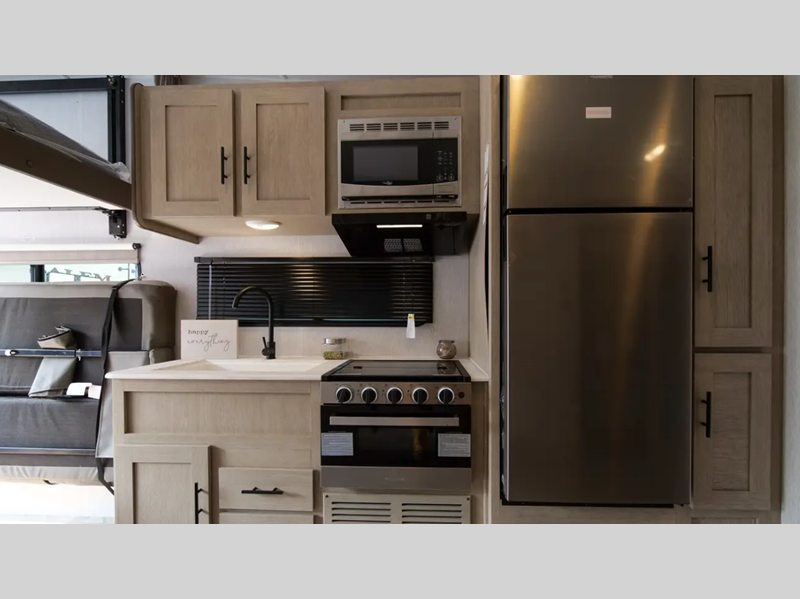 You will find a variety of models to choose from, allowing you to select the perfect one for your family and needs. There will always be a comfortable place to relax with loved ones and rest your head each night, and the kitchen and bath amenities make camping easier than ever. Since these models include plenty of storage space, you can bring along camping gear and comforts of home!