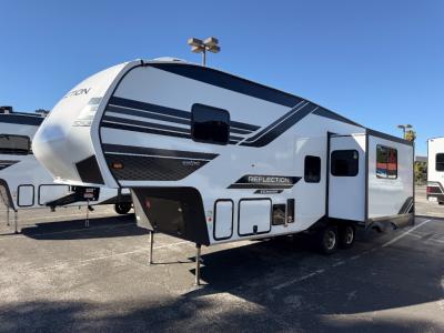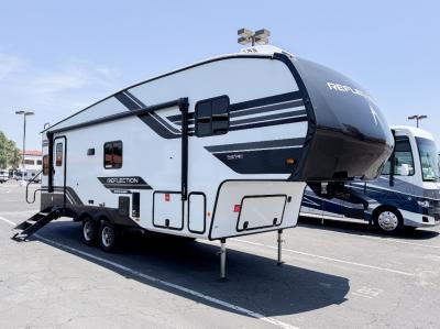 The Reflection 100 Series fifth wheels by Grand Design offer a more affordable camping experience without sacrificing comfort! These half-ton towables feature spacious interiors, superior construction materials, and smooth towing thanks to the MorRyde CRE3000 suspension system!
