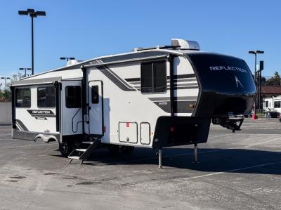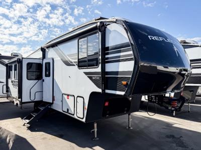 With any Reflection 150 Series fifth wheel by Grand Design, there is more available payload capacity and a broader range of half-ton trucks capable of towing this fifth wheel, and no slider hitch is needed thanks to the 90-degree turning radius which makes them short bed friendly and easier to tow. The mandatory Ultimate Power package provides a "One-Touch" automatic leveling system and a detachable power cord with LED light for easy setup, plus motion sensor pass-through lighting and entry lighting, and the Tire Linc TPMS will help you stay safe on the road. The interior offers residential cabinetry and premium Congoleum flooring, to the booth dinette and residential-style window treatment. Make your refined decision today!