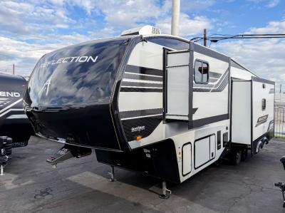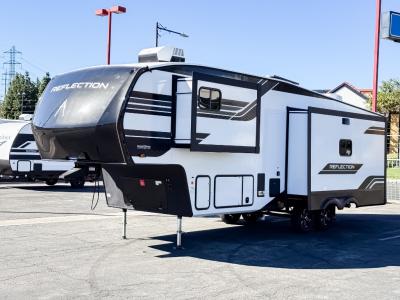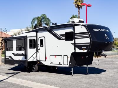 With any Reflection fifth wheel by Grand Design, you will have a solar panel for off-grid camping and a 60 amp charge controller and inverter prep, a Universal All-In-One docking station, unobstructed pass-through storage, and Goodyear Endurance tires. Each is constructed of gel coat exterior sidewalls, residential 5" truss rafters, walk-on roof decking, a fiberglass and radiant foil roof and front cap insulation plus laminated aluminum framed side walls, roof and end walls in slide rooms. Head inside to enjoy residential hardwood cabinet doors, premium Congoleum flooring, a spacious shower with a glass door, and many more comforts!