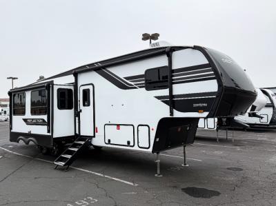 With any Reflection fifth wheel by Grand Design, you will have a solar panel for off-grid camping and a 60 amp charge controller and inverter prep, a Universal All-In-One docking station, unobstructed pass-through storage, and Goodyear Endurance tires. Each is constructed of gel coat exterior sidewalls, residential 5" truss rafters, walk-on roof decking, a fiberglass and radiant foil roof and front cap insulation plus laminated aluminum framed side walls, roof and end walls in slide rooms. Head inside to enjoy residential hardwood cabinet doors, premium Congoleum flooring, a spacious shower with a glass door, and many more comforts!