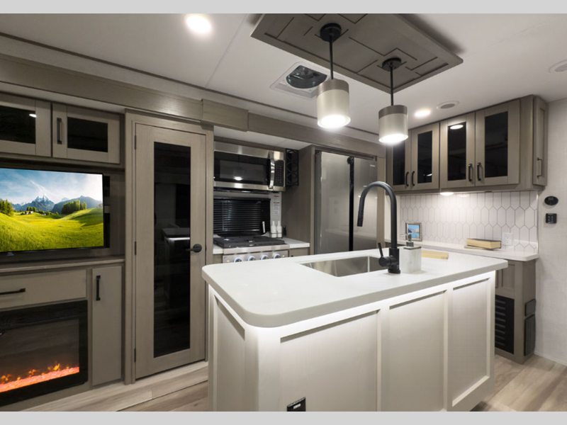 Reflection is built with the Artic 4-Season Protection package which provides a 35K BTU high capacity furnace, double insulated roof and front cap, a heated and underbelly with circulating heat, and 12V heat pads on the holding tanks to mention a few features that allow you to travel during any climate. The interior offers residential cabinetry, a deep seated stainless steel kitchen sink in the gourmet kitchen, a spacious shower with a glass door, and ductless flooring in the living area to name a few comforts.