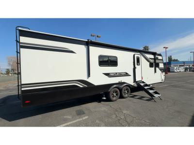 Reflection is built with the Arctic 4-Season Protection package which provides a 35K BTU high-capacity furnace, double insulated roof and front cap, a heated and underbelly with circulating heat, and 12V heat pads on the holding tanks to mention a few features that allow you to travel during any climate. The interior offers residential cabinetry, a deep-seated stainless-steel kitchen sink in the gourmet kitchen, a spacious shower with a glass door, and ductless flooring in the living area to name a few comforts.