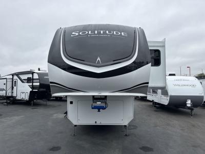 Each Solitude fifth wheel by Grand Design features a 101" wide-body construction, heavy duty 8,000 lb. axles, frameless tinted windows, and high-gloss gel coat sidewalls. You can camp year around thanks to the Weather-Tek Package that includes a 35K BTU high-capacity furnace, an all-in-one enclosed and heated utility center, and a fully enclosed underbelly with heated tanks and storage. Inside, you'll love the premium roller shades, hardwood cabinet doors, solid surface countertops, plus residential finishes throughout to make you truly feel at home. Each model also includes a MORryde CRE3000 suspension system, self adjusting brakes, and a MORryde pin box that will provide smooth towing from home to campground. Affordable luxury is possible with the Solitude fifth wheels; choose yours today!