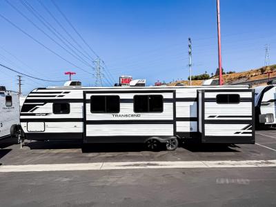 The customer-focused, quality-built Transcend Xplor travel trailers by Grand Design are your ticket to fun and adventure. You will appreciate the power tongue jack when it comes time to set up, as well as the all-in-one utility center and the detachable power cord with an LED light. These models include many outlets throughout, USB ports to charge your gadgets, and a JBL exterior speaker to listen to your favorite tunes. The interior of the Transcend Xplor will have you feeling right at home with upgraded residential furniture, residential countertops, residential cabinet doors, and the list goes on!