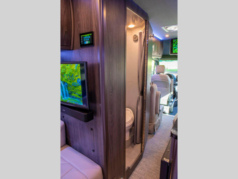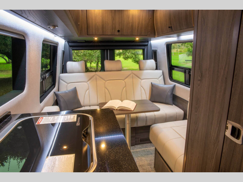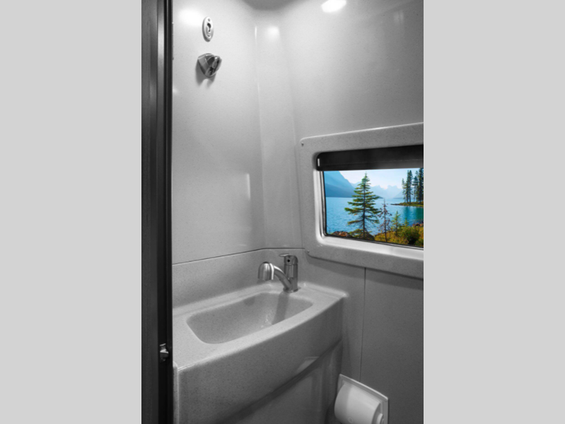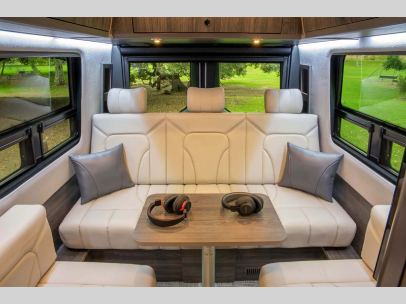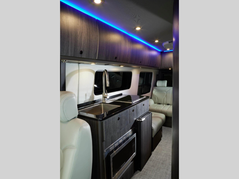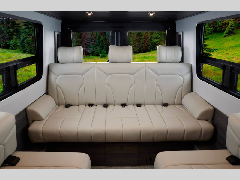 Each is built on the Mercedes-Benz Sprinter 3500XD 170" (non-extended) with a 4-cyclinder diesel engine, and includes an air suspension and a Timberline System. The interior offers Ultraleather seating surfaces for style and comfort, hardwood cabinets with radius doors, solid surface countertops for durability, and a wet bath with a window, sink and porcelain toilet with foot flush for added convenience.
