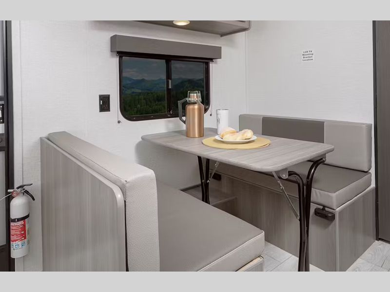 Sleeps 7 Length 22 ft 10 in Ext Height 10 ft 4 in Interior Color Pewter Hitch Weight 495 lbs Dry Weight 3930 lbs Cargo Capacity 4370 lbs Fresh Water Capacity 21 gals Grey Water Capacity 30 gals Black Water Capacity 30 gals Tire Size ST205/75R14D Furnace BTU 20000 btu Number Of Bunks 2 Available Beds Queen Murphy Refrigerator Type 12V Refrigerator Size 7.7 cu ft Cooktop Burners 2 Number of Awnings 1 LP Tank Capacity 20 lbs Water Heater Type Girard On Demand Tankless AC BTU 5000 btu Awning Info 15' Power Axle Count 2 Number of LP Tanks 1 Shower Type Standard Similar Floorplans