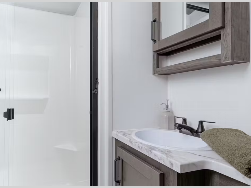 Sleeps 9 Slides 3 Int Height 6 ft 6 in Interior Color Liam, Cashmere Furnace BTU 35000 btu Number Of Bunks 2 Available Beds King Refrigerator Type 12V GE Refrigerator Size 10 cu ft Cooktop Burners 3 Shower Size 34" Number of Awnings 1 Axle Weight 5100 lbs LP Tank Capacity 30 lbs Water Heater Type On Demand AC BTU 15000 btu TV Info LR 40" HDTV Awning Info 21' Power Lighted w/Adjustable Arms Axle Count 2 Washer/Dryer Available Yes Number of LP Tanks 2 Shower Type Radius Electrical Service 50 amp Similar Floorplans