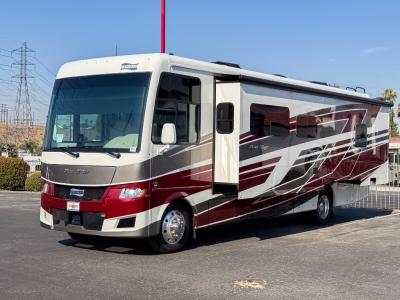 Sleeps 5 Slides 3 Length 32 ft 11 in Ext Width 8 ft 6 in Ext Height 12 ft 10 in Int Height 7 ft Interior Color Arlow, Stowe, Vista Exterior Color Annapolis, Calvert, Williamsburg Hitch Weight 5000 lbs GVWR 26000 lbs Dry Weight 21450 lbs Cargo Capacity 4550 lbs Fresh Water Capacity 75 gals Grey Water Capacity 60 gals Black Water Capacity 40 gals Furnace BTU 35000 btu Generator 5.5 kW Onan Fuel Type Gas Engine 7.3L V8 Chassis Ford F-53 Horsepower 335 hp Fuel Capacity 80 gals Wheelbase 228 in Available Beds King Torque 468 ft-lb Refrigerator Type Norcold Refrigerator Size 10 cu ft Convection Cooking Yes Cooktop Burners 3 Shower Size 40" x 30" Number of Awnings 1 Axle Weight Front 9000 lbs Axle Weight Rear 17500 lbs LP Tank Capacity 25 gals Water Heater Capacity 6 gal Water Heater Type Gas/Electric AC BTU 27000 btu TV Info LR Samsung LED TV Lift, BR Samsung LED TV Awning Info Carefree Travel'R Side Awning with Strip Lighting Gross Combined Weight 30000 lbs Shower Type Standard Electrical Service 50 amp Similar Motor Home Class A Floorplans