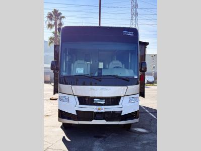 Each Bay Star Class A gas motorhome by Newmar delivers a smooth ride thanks to the standard electronic stability control, along with the 7.3-liter V8 engine with 335 HP and 468 lb./ft. of torque. The exterior is sure to turn heads with its full-paint Masterpiece Finish and new graphics packages, plus you'll have three interior decor choices and three wood choices to truly make the coach your own. Each model includes Williamsburg furniture, woven material in the slide outs, luxurious vinyl plank flooring, polished solid surface countertops in the kitchen, plus many more comforts. Head outside to find lights in the storage compartments, a 5.5kW Cummins Onan generator with remote switch, and hydraulic leveling jacks with a Bluetooth compatible touch pad for set up easy as 1-2-3! You can further customize your coach with the many options that are offered!