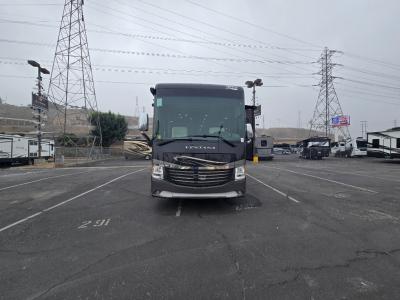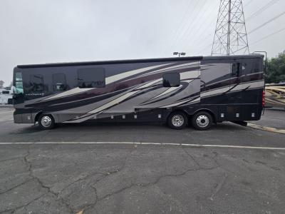 Sleeps 5 Slides 3 Length 43 ft 10 in Ext Width 8 ft 6 in Ext Height 13 ft 1 in Int Height 6 ft 11 in Interior Color Brighton, Palisades, Saguaro Exterior Color Cider, Ebony, Sky Hitch Weight 15000 lbs GVWR 45600 lbs Dry Weight 36950 lbs Cargo Capacity 8650 lbs Fresh Water Capacity 105 gals Grey Water Capacity 75 gals Black Water Capacity 55 gals Furnace BTU 50000 btu Generator 8.0 kW Cummins Onan Diesel Quiet Series Fuel Type Diesel Engine Cummins L 8.9 Chassis Freightliner XCR Tag Axle Horsepower 400 hp Fuel Capacity 100 gals Wheelbase 281 in Available Beds King Torque 1250 ft-lb Refrigerator Type Whirlpool Refrigerator Size 19.7 cu ft Convection Cooking Yes Cooktop Burners 2 Shower Size 50" x 34" Number of Awnings 1 Axle Weight Front 15600 lbs Axle Weight Rear 20000 lbs Axle Weight Tag 10000 lbs Water Heater Type Continuous AC BTU 45000 btu TV Info LR 50" Samsung LED 4K TV on Televator, BR Samsung LED 4K Awning Info Girard G2000 Power w/Wind Sensor, Remote, and LED Lights Washer/Dryer Available Yes Gross Combined Weight 60600 lbs Shower Type Shower w/Seat Electrical Service 50 amp Similar Motor Home Class A - Diesel Floorplans