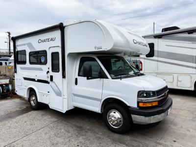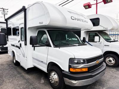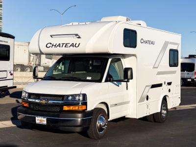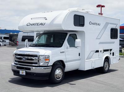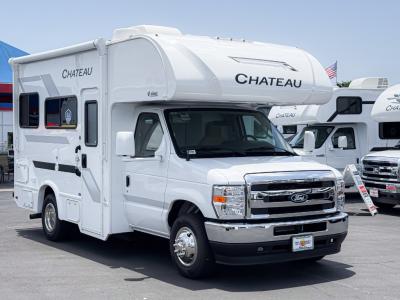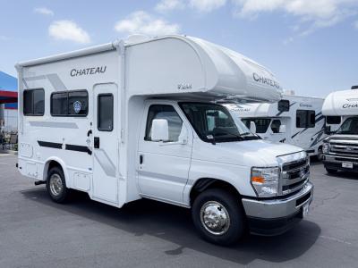 With any Chateau ESpec Class C gas motorhome by Thor Motor Coach, you will find convenient amenities, a modern interior, and a reliable Ford E-Series chassis, with an optional Chevy chassis on select models to power your adventures. There is welded tubular aluminum roof and sidewall cage construction, a one-piece fiberglass front cap, and a premium one-piece domed roof membrane for added strength. Residential vinyl flooring will be easy to keep clean, and you'll love the sleek look of the Hampton Collection two-toned cabinets. These motorhomes also include a 50 State 4.0 kW dual gas/LP generator and a 30-amp shoreline power cord to keep you going, along with a tankless water heater and 13,500 roof front A/C to ensure your comfort!