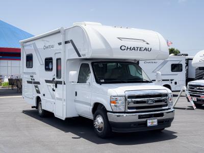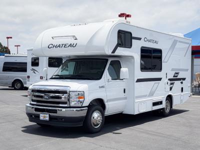With any Chateau ESpec Class C gas motorhome by Thor Motor Coach, you will find convenient amenities, a modern interior, and a reliable Ford E-Series chassis, with an optional Chevy chassis on select models to power your adventures. There is welded tubular aluminum roof and sidewall cage construction, a one-piece fiberglass front cap, and a premium one-piece domed roof membrane for added strength. Residential vinyl flooring will be easy to keep clean, and you'll love the sleek look of the Hampton Collection two-toned cabinets. These motorhomes also include a 50 State 4.0 kW dual gas/LP generator and a 30-amp shoreline power cord to keep you going, along with a tankless water heater and 13,500 roof front A/C to ensure your comfort!