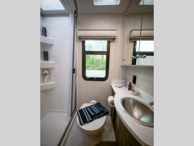 Each Compass AWD features an 80-inch interior height for added comfort, plus vinyl flooring for a more residential look and color options that fit your style. The Winegard ConnecT 2.0 will be perfect when you need to get some work done during the week, and there is a TV in the living room so you'll never go bored. You will stay powered up by the 50 State 4.0 kW gas generator and solar power, plus addition solar power and lithium house batteries on the Compass GO model 22MT.