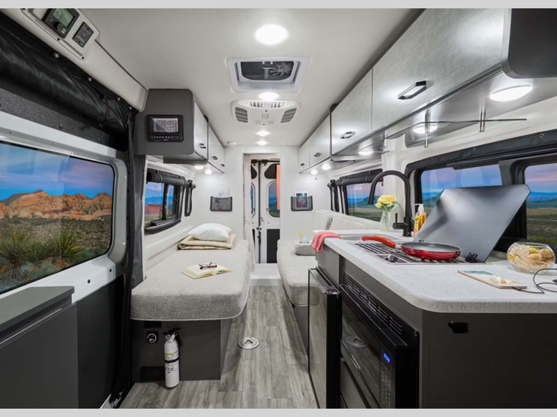 Sleeps 2 Length 21 ft 1 in Ext Width 6 ft 9 in Ext Height 9 ft 5 in Int Height 6 ft 3 in Interior Color Alpine White, Charcoal Fusion Exterior Color Charcoal, Silver, White Hitch Weight 3500 lbs GVWR 9350 lbs Fresh Water Capacity 27 gals Grey Water Capacity 13 gals Black Water Capacity 13.5 gals Furnace BTU 14300 btu Generator Onan® RV QG 2800 Fuel Type Gasoline Engine 3.6L Pentastar V6 Chassis RAM ProMaster 3500 Horsepower 276 hp Fuel Capacity 24 gals Wheelbase 159 in Available Beds Dual Twin Torque 250 ft-lb Refrigerator Type Single Door 12V Cooktop Burners 2 LP Tank Capacity 24 lbs. Water Heater Capacity 2.64 gal Water Heater Type Truma Combi Eco LP AC BTU 11000 btu Gross Combined Weight 11500 lbs Shower Type Wet/Bath Shower Electrical Service 30 amp Similar Floorplans