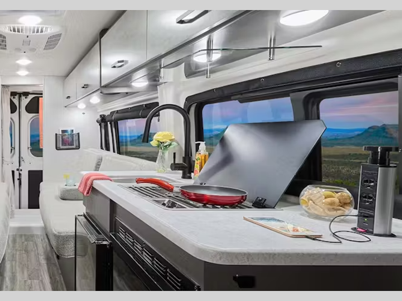 Sleeps 2 Length 21 ft 1 in Ext Width 6 ft 9 in Ext Height 9 ft 5 in Int Height 6 ft 3 in Interior Color Alpine White, Charcoal Fusion Exterior Color Charcoal, Silver, White Hitch Weight 3500 lbs GVWR 9350 lbs Fresh Water Capacity 27 gals Grey Water Capacity 20 gals Black Water Capacity 4.75 gals Furnace BTU 14300 btu Generator Onan® RV QG 2800 Fuel Type Gasoline Engine 3.6L Pentastar V6 Chassis RAM ProMaster 3500 Horsepower 276 hp Fuel Capacity 24 gals Wheelbase 159 in Available Beds Pull Out King Torque 250 ft-lb Refrigerator Type Single Door 12V Cooktop Burners 2 LP Tank Capacity 24 lbs. Water Heater Capacity 2.64 gal Water Heater Type Truma Combi Eco LP AC BTU 11000 btu Gross Combined Weight 11500 lbs Shower Type Wet/Bath Shower Electrical Service 30 amp -
