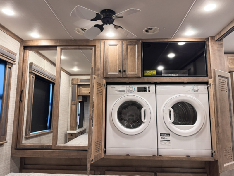 Each Allegro Bay is dry camp ready thanks to the 150-gallon fresh water tank, and you'll enjoy more power provided by the AGM extended cycle house batteries, or the optional Lithium Ion house batteries. Handcrafted cabinetry will add to the luxury you'll find throughout the Allegro Bay, and the Spyder Multiplex system puts you in control of all your coach's functions. Features you will enjoy include an automatic double entry step, an in-dash navigation system via a 10" detachable touchscreen, washer and dryer prep on all models, and optional Starlink prep that gives you the option to work remotely if needed!