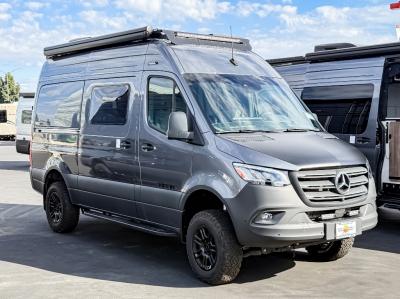 Sleeps 2 Length 19 ft 6 in Ext Width 7 ft 8 in Ext Height 10 ft Int Height 6 ft 3 in Interior Color Stargazer Exterior Color Blue Grey, Arctic White, Selenite Grey, Pebble Grey Hitch Weight 5000 lbs GVWR 9050 lbs Fresh Water Capacity 26 gals Grey Water Capacity 22 gals Black Water Capacity 4.5 gals Tire Size LT 245/70R 17 Fuel Type Diesel Engine 2.0L 4-Cylinder Twin Scroll Turbo Chassis Mercedes-Benz 2500 Sprinter Cargo Van AWD Horsepower 208 hp Fuel Capacity 24.5 gals Torque 332 ft-lb Refrigerator Type 12 Volt Refrigerator Size 3.1 cu ft Cooktop Burners 1 Shower Size 24" x 36" Number of Awnings 1 AC BTU 15000 btu Awning Info Girard Side Mount Power w/LED Lights Gross Combined Weight 13930 lbs Shower Type Wet/Bath Shower Electrical Service 30 amp
