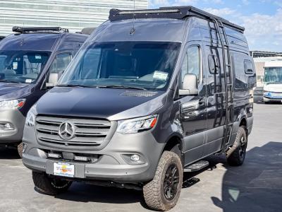 Pick a place, any place, and start packing. This off-road capable diesel van features a 49" x 79" gear garage beneath the power lift bed where you can store camp chairs, paddle boards for the lake, outdoor games and plenty of hiking gear. The on-board wet bath will keep you fresh and clean, and you can easily whip up meals and snacks in the kitchen with a single-burner induction cooktop and refrigerator beneath the counter for your perishables. There is also a sink for cleaning up and a removable counter extension. An optional jump seat and removable wall mounted swivel table behind the driver's seat can accommodate you for meals or a game of cards, or you can choose the optional adventure bar work/storage solution in place of the jump seat. Both front driver and passenger seats swivel to the back so you'll have plenty of seating even with company. At night, the power lift bed will allow you to get a great night's rest so you can enjoy it all again the next day!