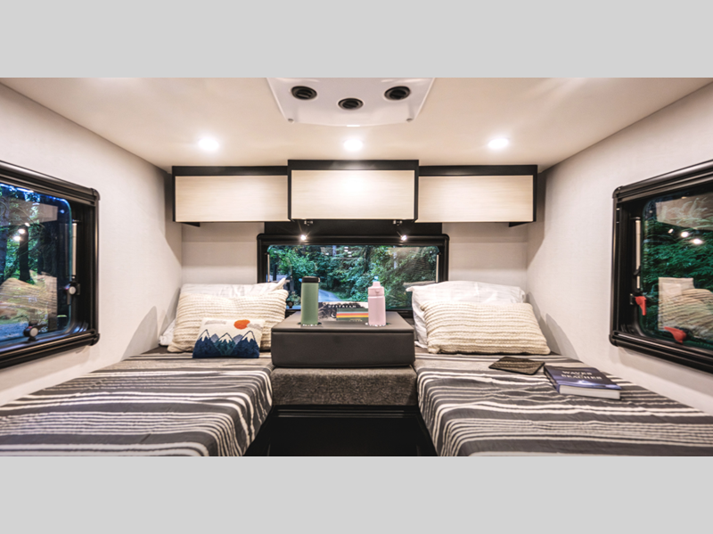 Sleeps 3 Length 25 ft 6 in Ext Width 7 ft Ext Height 11 ft 2 in Int Height 6 ft 8 in Interior Color Boho Chic Exterior Color Desert Tan, Cement Grey Full-Body Paint Choices Hitch Weight 5000 lbs GVWR 11030 lbs Fresh Water Capacity 48 gals Grey Water Capacity 48 gals Black Water Capacity 4.5 gals Tire Size 245/70R16 Generator Diesel Fuel Type Diesel Engine 2.0L I4 Turbo Diesel High Output Chassis Mercedes-Benz 3500XD AWD Dual Wheel Cutaway Horsepower 208 hp Fuel Capacity 24.5 gals Wheelbase 170.3 in Available Beds Twin Beds with King Conversion Torque 332 ft-lb Refrigerator Size 10.5 cu ft Convection Cooking Yes Cooktop Burners 1 Axle Weight Front 4410 lbs Axle Weight Rear 7720 lbs LP Tank Capacity 12 Gals. Water Heater Type Hydronic AC BTU 15000 btu Basement Storage 90 cu. ft. Gross Combined Weight 15250 lbs Shower Type Wet/Bath Shower Electrical Service 30 amp Similar Floorplans
