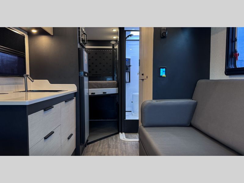 You will stay powered up by the diesel generator and 270Ah Battleborn lithium battery pack, and there are optional solar panels for even more power. Inside, the black powder coated aluminum cabinetry throughout will stand up over the test of time, and there are many comforts you won't want to camp without, such as a full galley kitchen and convenient wet bath!
