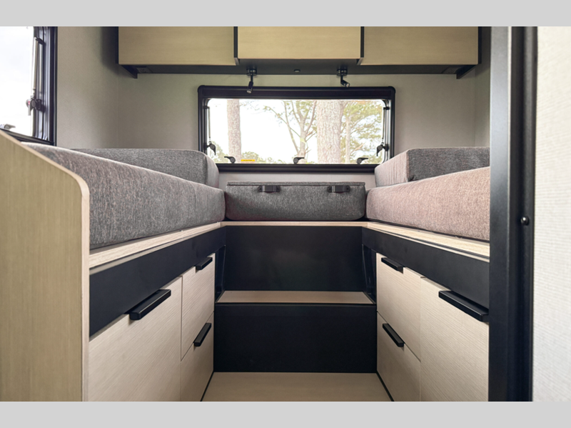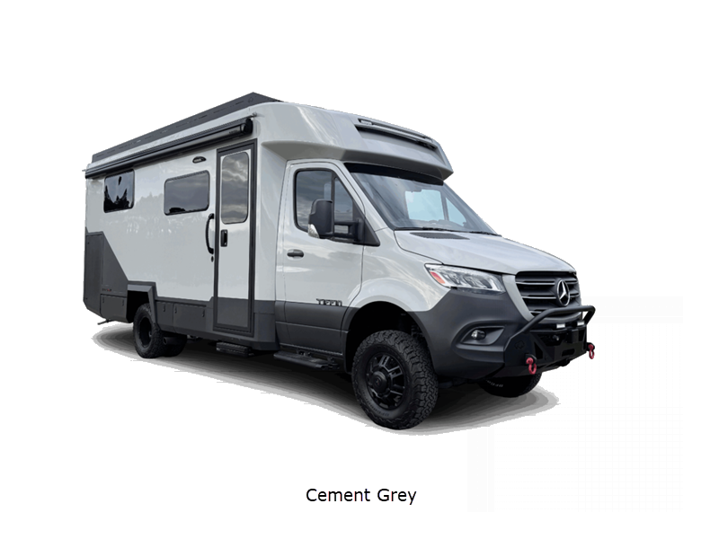 Sleeps 3 Length 25 ft 6 in Ext Width 7 ft Ext Height 11 ft 2 in Int Height 6 ft 8 in Interior Color Boho Chic Exterior Color Desert Tan, Cement Grey Full-Body Paint Choices Hitch Weight 5000 lbs GVWR 11030 lbs Fresh Water Capacity 52 gals Grey Water Capacity 52 gals Black Water Capacity 4.5 gals Tire Size 245/70R16 Generator 3.2 kW RVMP Diesel Fuel Type Diesel Engine 2.0L I4 Turbo Diesel High Output Chassis Mercedes-Benz 3500XD AWD Dual Wheel Cutaway Horsepower 208 hp Fuel Capacity 24.5 gals Wheelbase 170.3 in Available Beds Twin Beds with King Conversion Torque 332 ft-lb Refrigerator Type Dometic Dual HInge Refrigerator Size 10.5 cu ft Cooktop Burners 1 Shower Size 48" x 32" Number of Awnings 1 Axle Weight Front 4410 lbs Axle Weight Rear 7720 lbs Water Heater Type Hydronic AC BTU 15000 btu Basement Storage 90 cu. ft. Awning Info Girard Side Mounted Power w/Integrated LED Lights and Built-in Speakers Gross Combined Weight 15250 lbs Shower Type Wet/Bath Shower Electrical Service 30 amp Similar Floorplans