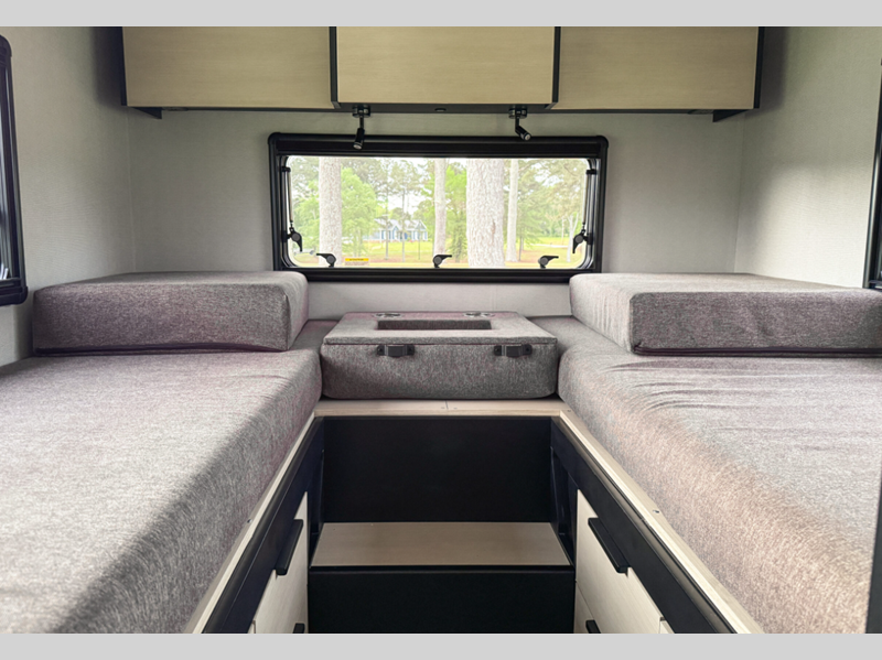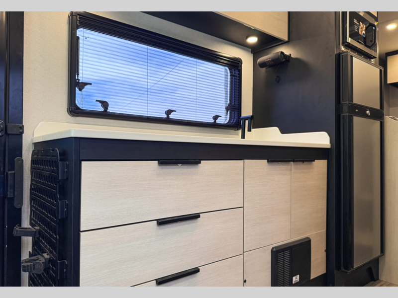 You will stay powered up by the 3.2 kW RVMP diesel generator, 3000W Xantrex inverter, and SmartPlug detachable 30-Amp shore power cord. An optional Lithionics battery system is also available, along with an optional 400-watts of solar power for even more off-grid capabilities. Inside, the black powder coated aluminum cabinetry throughout will stand up over the test of time, and there are many comforts you won't want to camp without, such as a full galley kitchen and convenient wet bath!