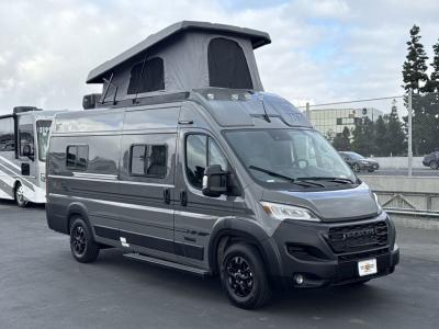 This camper van with an L-track storage system is perfect for those needing more storage space for their hiking and biking gear. You can stay powered up with the 2,800-watt gas generator, and there is a 13,500 BTU air conditioner with directional ducts and dial control that will allow you to come inside to cool off after a trail ride. A Murphy+ bed comes standard, and any guests that tag along can sleep in the pop-top sleeping area! If you choose to remove the pop-top, you'll enjoy the deluxe powered ventilator fan instead. You'll find the wet bath to come in handy when you want to clean up, and the dinette seating with a removable pedestal table will provide a place to enjoy your dinner at.
