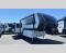 This Model Z luxury fifth wheel is bright and modern on the inside, with loads of amenities that will have you dreaming of your next trip! Enter and find a spacious combined living/kitchen space thanks to dual opposing slides. There is ample seating with a sliding desk/dining table, 62" theater seating, and a 72" tri-fold sofa along the rear wall. You can easily relax and enjoy the 50" Smart telescoping TV with a cozy fireplace below. The kitchen offers all that you need to prepare and cook meals just like home with a 16 cu. ft. refrigerator for your perishables, a 30" microwave oven, and three burner range top and oven. You will love the integrated spice rack, and the kitchen island all outfitted with dog bowls and double pull out trash bins with an integrated Stow & Go paper towel holder. There is also an 84" pantry with adjustable shelves for all of your canned and dry goods. Head up the steps to a private master suite with king bed slide. You can opt for the queen bed if you like. A sliding dresser top features hidden storage which is perfect for jewelry and other personal belongings. The front wardrobe features mirrored doors and the corner closet has been prepped for a stackable washer and dryer if you choose to add that option. Relax and enjoy a large bath featuring a linen cabinet, a 30" x 42" shower, and vanity with sink, plus medicine cabinet.