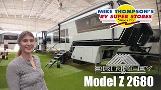 The Brinkley mid-profile Model Z fifth wheels bring you clean lines and an upscale look with plenty of style and exciting new features like the industry first brass plumbing connections. These units also feature an automotive grade front cap, plenty of exterior storage, dual exterior hot and cold showers, and wide stance leveling jacks for easy set up. Residential frameless windows provide a clean look and beautiful views, and ample electrical outlets and USB/USB-C outlets allow all of your electronics and appliances to easily be used and charged.