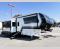 You're going to love every minute spent in this spacious fifth wheel that can sleep four. There is an inviting rear living area with a 72" tri-fold sofa and theater seating across from the televator and fireplace. The chef of your group can whip up dinner on the three burner cooktop or in the 30" residential microwave, and there is a 16 cu. ft. refrigerator that even opens when with the slide out is in. You will also enjoy the kitchen island with a farmhouse sink and roller cover, dual trash bins with a Stow N' Go paper towel holder, plus convenient dog bowls for your furry friends. You can store all your paper goods and snacks in the 84" pantry with adjustable shelving, and there is a hutch for nice dishes plus shoe storage in this model as well. Head to the front master bedroom where you'll find a queen bed with a TV, a large slide out with a wardrobe with drawers, plus a spacious bath.