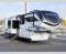 Enjoy each and every vacation, month-long trips, or even extended stays at an RV park in this spacious fifth wheel! The raised rear kitchen gives the cook plenty of room to whip up any type of meal using the stainless steel appliances including a built-in oven, an oversized pantry, and the raised bar top will provide you even more counter space on top of dining with two chairs that overlook the middle living area. Relaxing is made easy thanks to two tri-fold sofas and theatre seating while watching the big game on the LED Smart TV and enjoying the fireplace below. At night, retire to your own queen bed which slides out to provide more floor space, and you can store your clothes in the slide top dresser and front closet with washer and dryer prep.