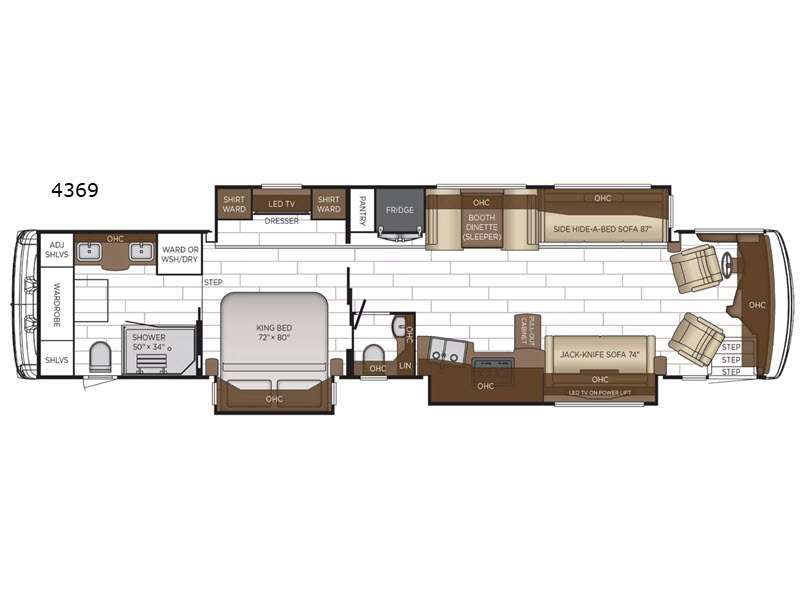- Two 19" Skyworth TV/DVD Monitors - One At Each Standard Bunk* (Floor Plan 4340)