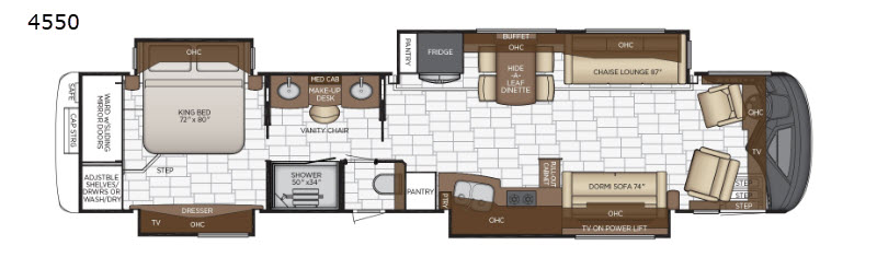 | Gross Combined Weight | 74000 lbs | Shower Type | Shower w/Seat |