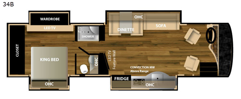 You're going to love traveling in this Bentley Diamond 34B motorhome by NeXus RV! It features a rear private bedroom with a king innerspring mattress, a wardrobe and closet for you to keep your items neat and tidy, and a 32" LED TV for those nights when you just can't fall asleep. Throughout this unit you will find lots of luxurious features like the fireplace in the living room, the upgraded BEAU™ Flooring, and the washer/dryer prep. After you have grabbed your favorite snack, you can relax on either the booth dinette or the tri-fold sofa.