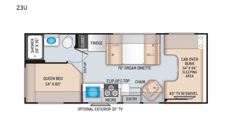 Thor Motor Coach Four Winds Class C gas motorhome 23U highlights: