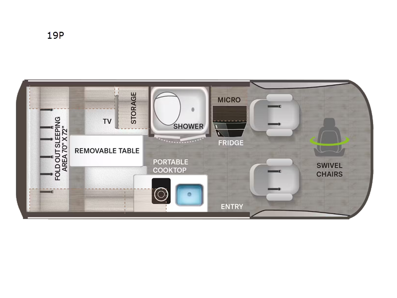 | Refrigerator Type | Single Door 12V Electric | Cooktop Burners | 1 |